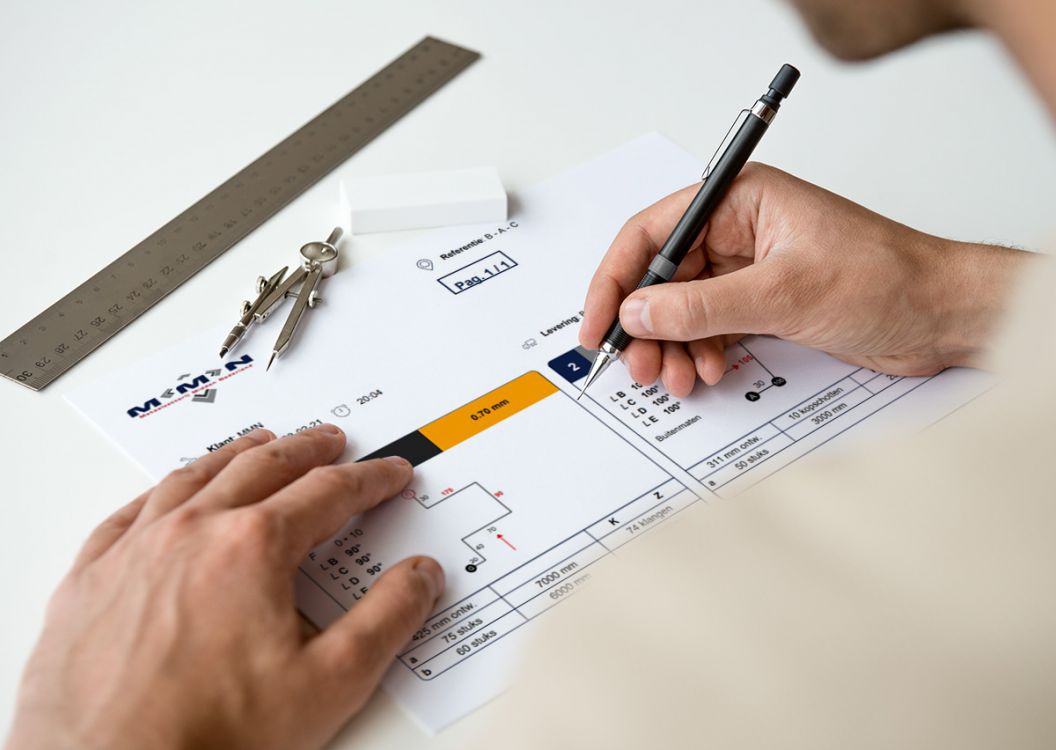 Na de binnengekomen bestelling, wordt het standaard zetwerk op basis van materiaal, ontw. maat en lengte direct de productie-routing bepaald om alle machines en hun operators in hun kracht te benutten. Zo worden opdrachten snel en efficiënt verwerkt. Elke operator draagt de verantwoordelijkheid voor zijn of haar stukje van het proces, waarbij de productieleider een controlerende en begeleidende rol vervult en prioriteiten stelt binnen dit proces in samenspraak met de orderverwerker.